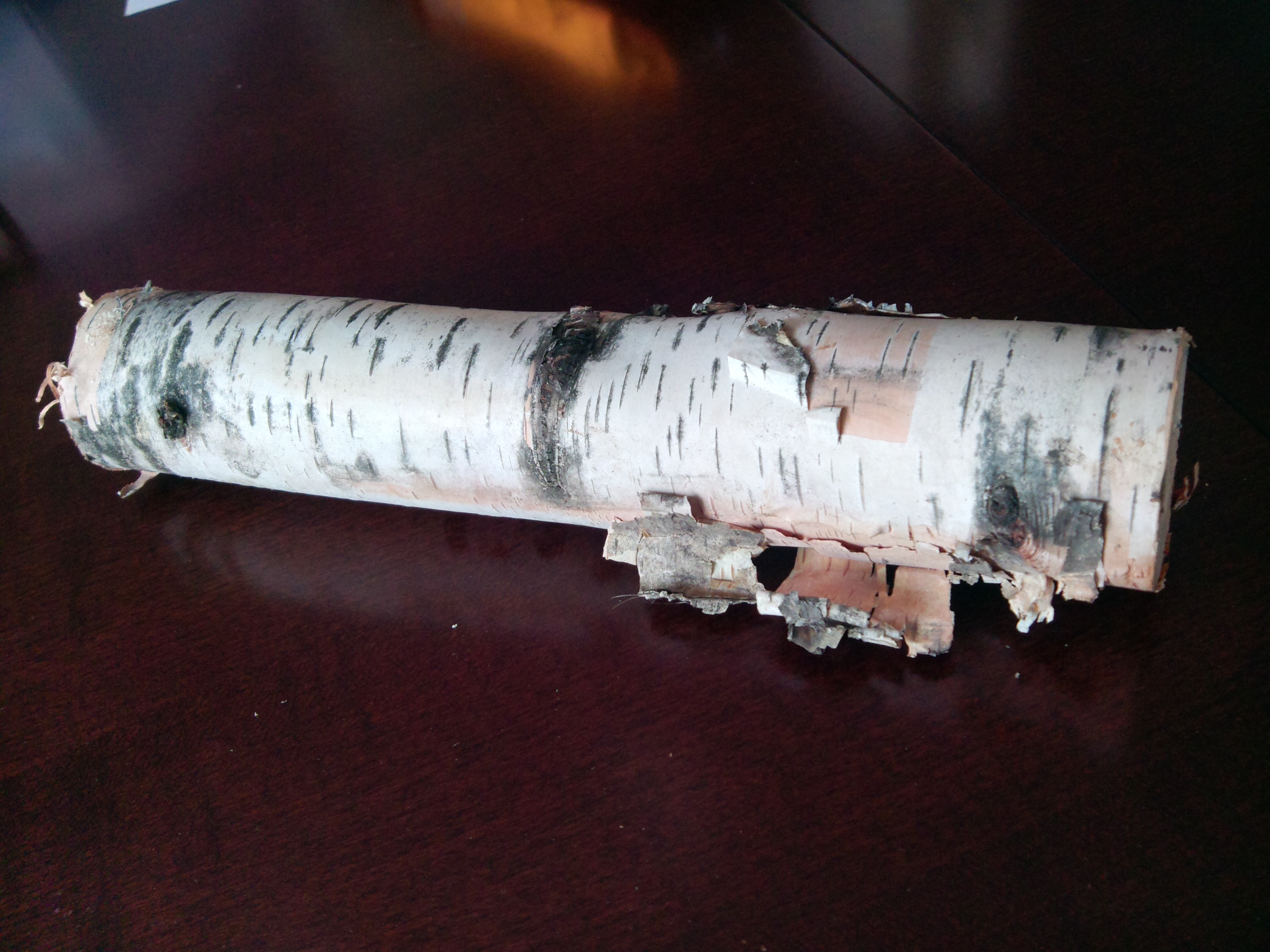 Last weekend, I grabbed a short piece of birch from our wood pile and threw it on the lathe. I wanted to see how it turned when it was off-balance. I didn’t try and find the centres, I just kind of eyeballed it. Well, it turned down pretty well, but I had to take an awful lot off to get it round and straight. It was very satisfying to get a bunch of linguine noodle shavings. Not something that happens with dry and seasoned wood. It was quite a surprise when I got it to the finished stick how much moisture was still in the piece.