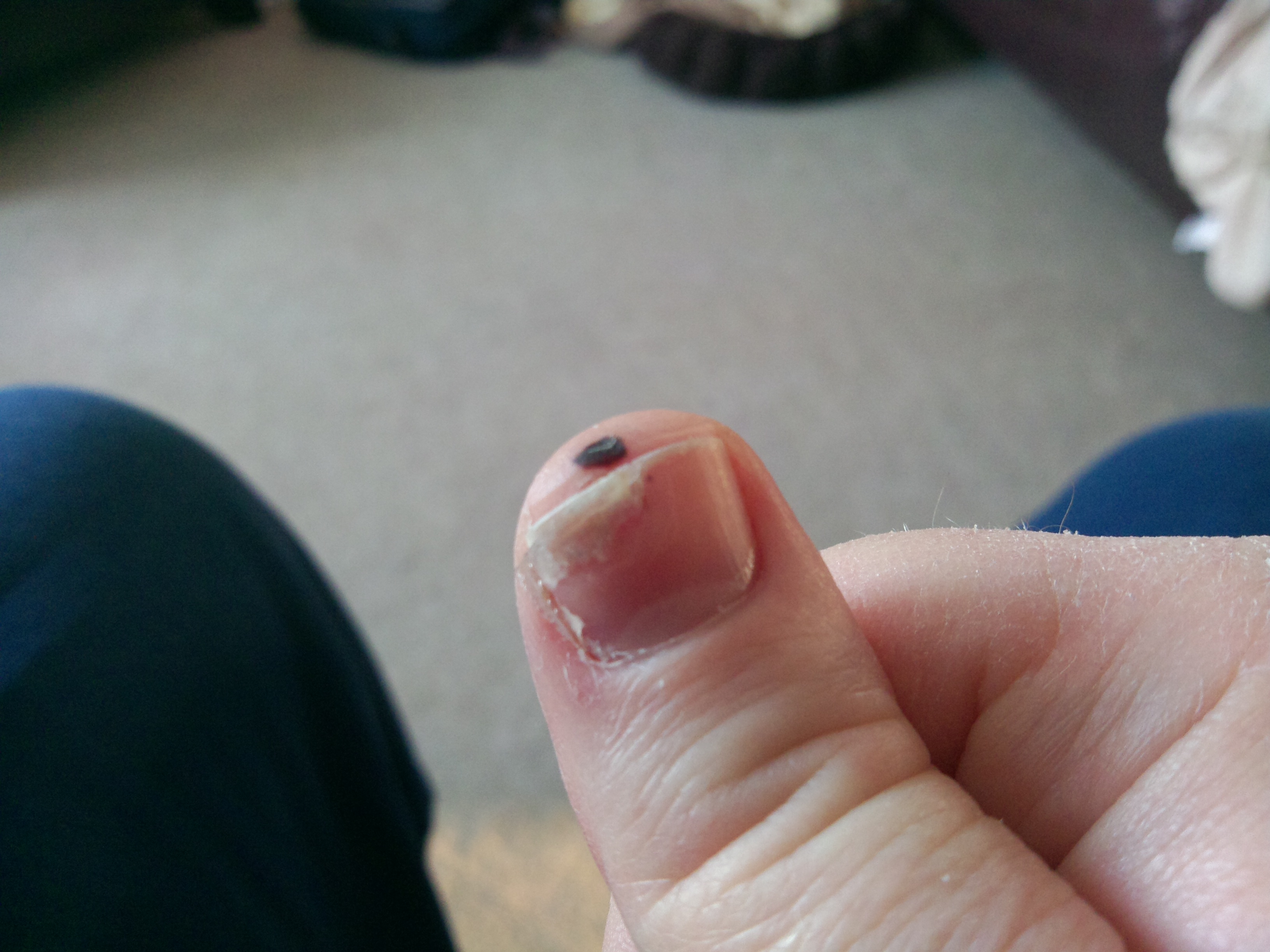 The picture is of a largely healed thumb after almost a week of care.