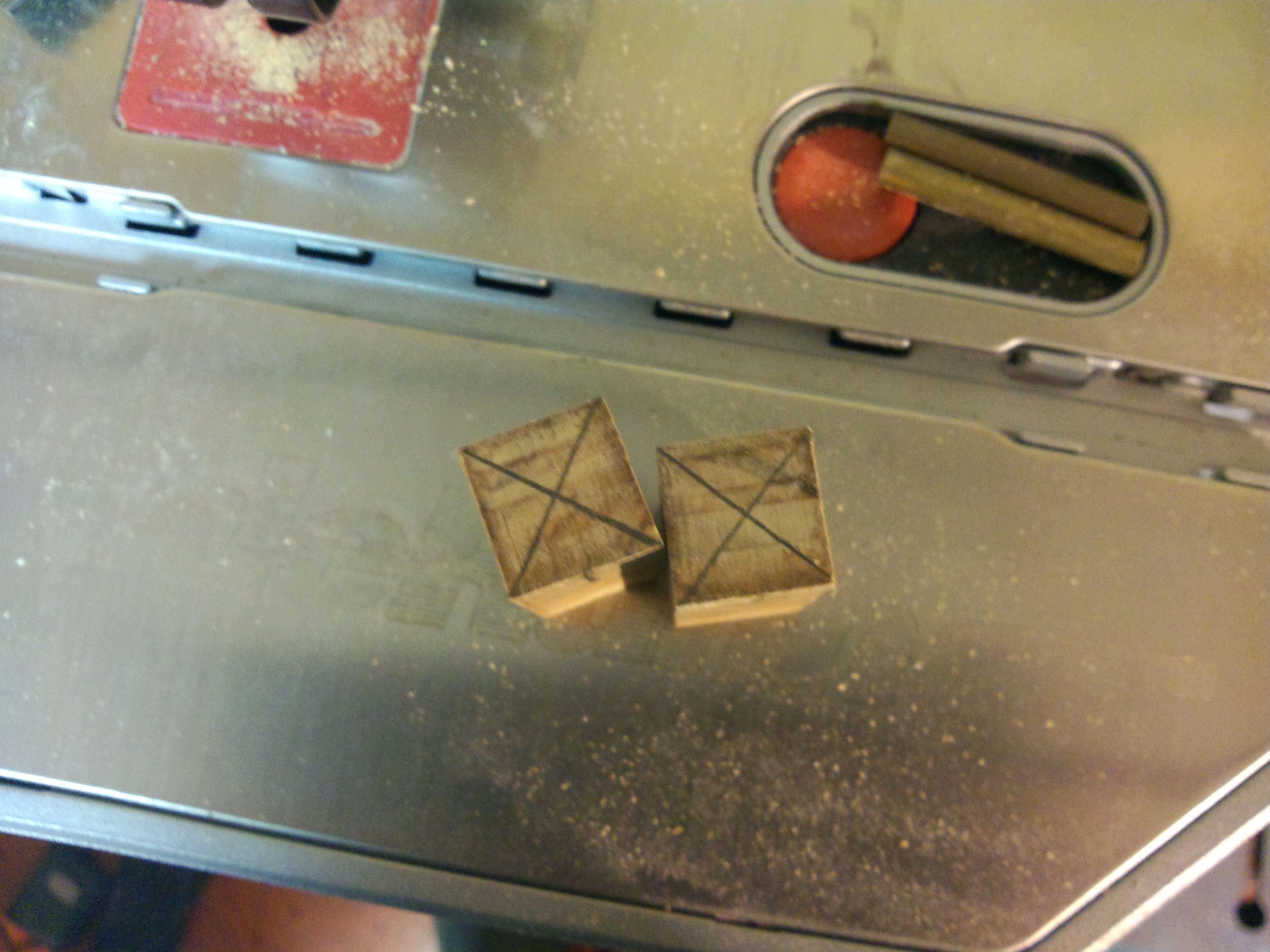Holding the blank by hand is probably a bit risky, but I am careful… although not careful enough in this case, because I cut my palm at some point during this process. The picture below is the blanks squared off and ready to go on the lathe.