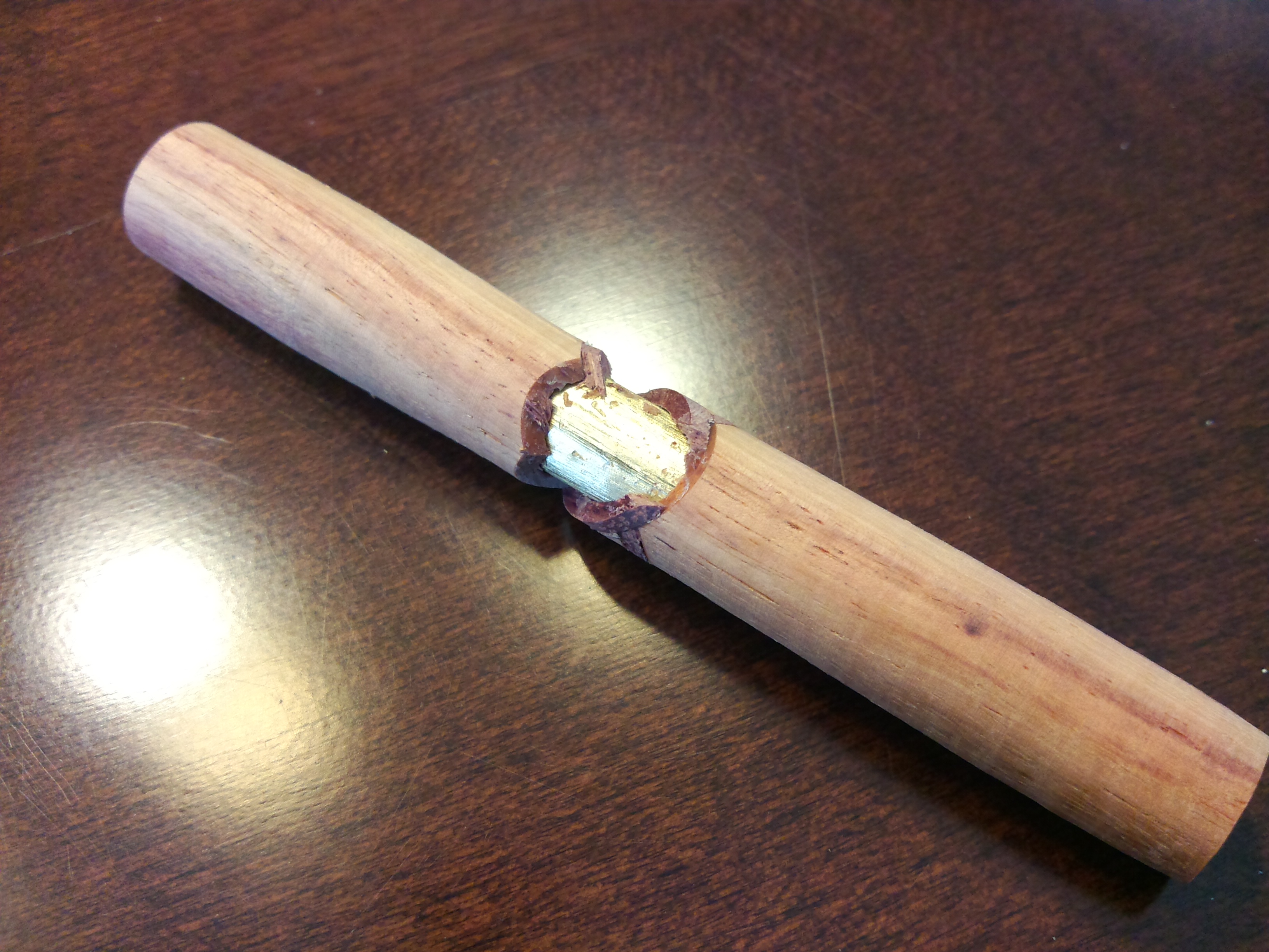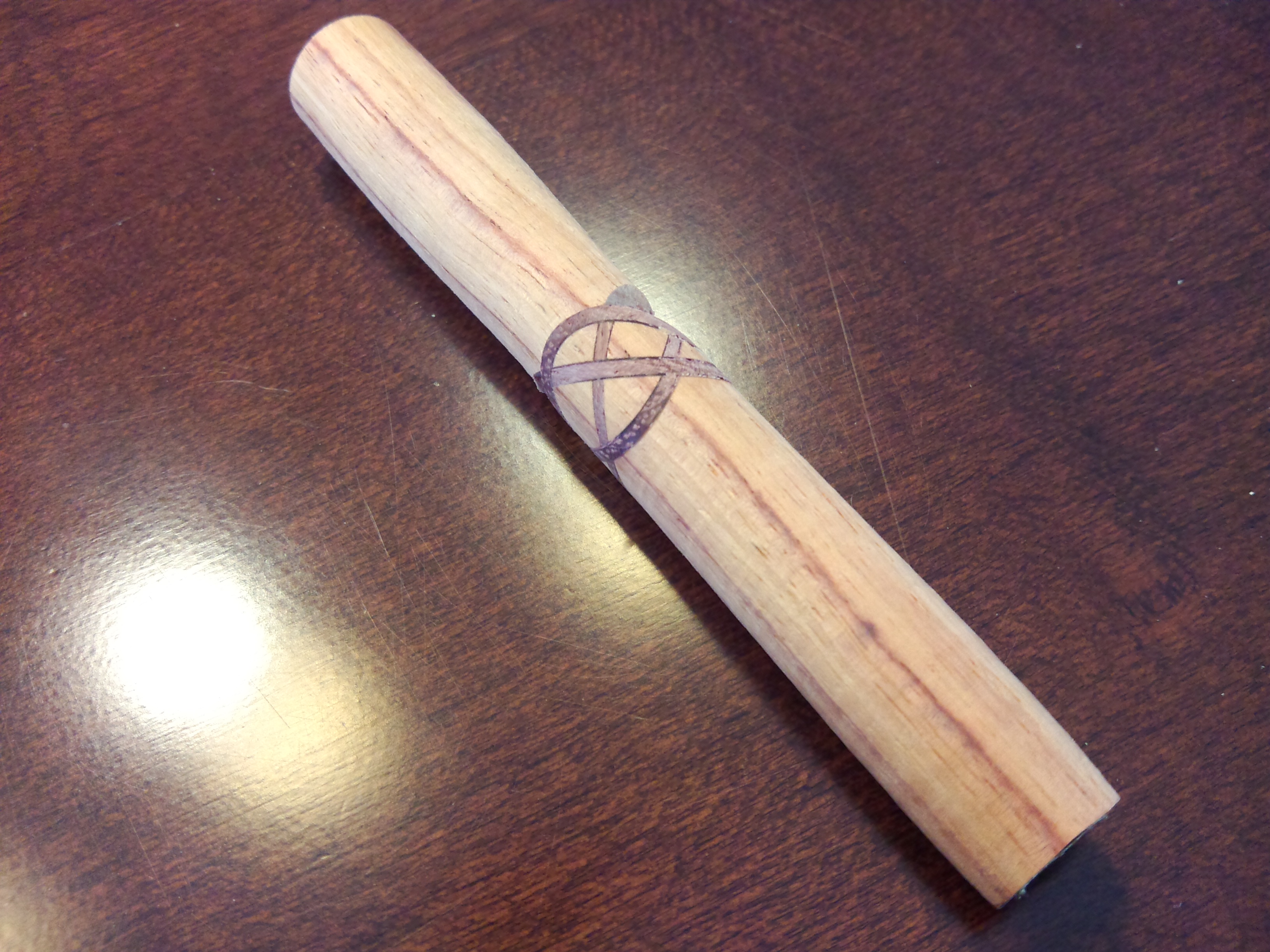 Quite some time ago, I tried my hand at creating a “knot” design in a block of wood. I was limited back then because I was trying to make the cuts in the blank with a handsaw. My cover picture is the result of that trial. It turned out reasonably well, but the “strands” in the knot do not line up as they are supposed to. With the new Longwood pen that I picked up, I decided that the wood was TOO long not to have some kind of interest in it. I decided to try again with my new Bladerunner.