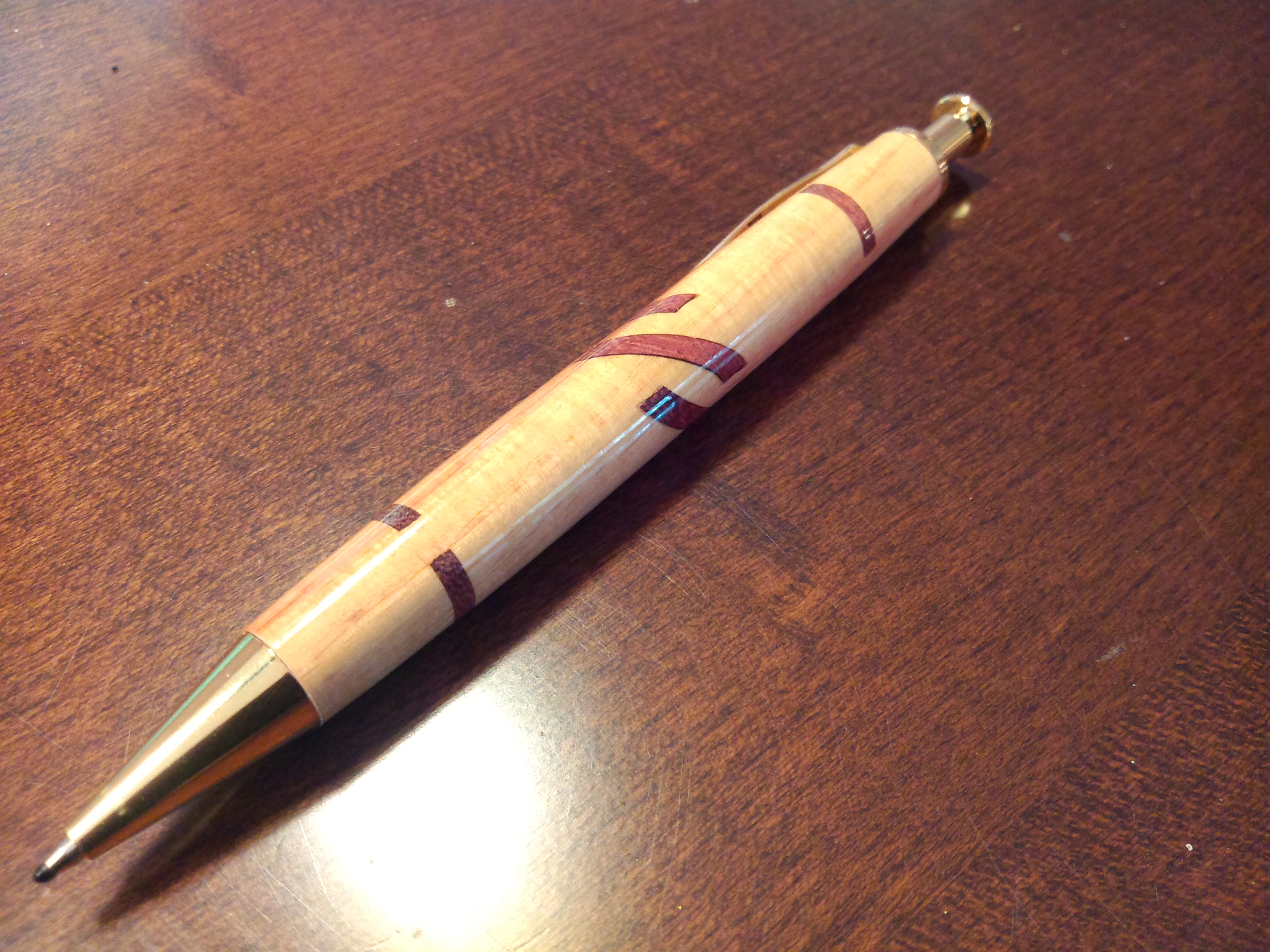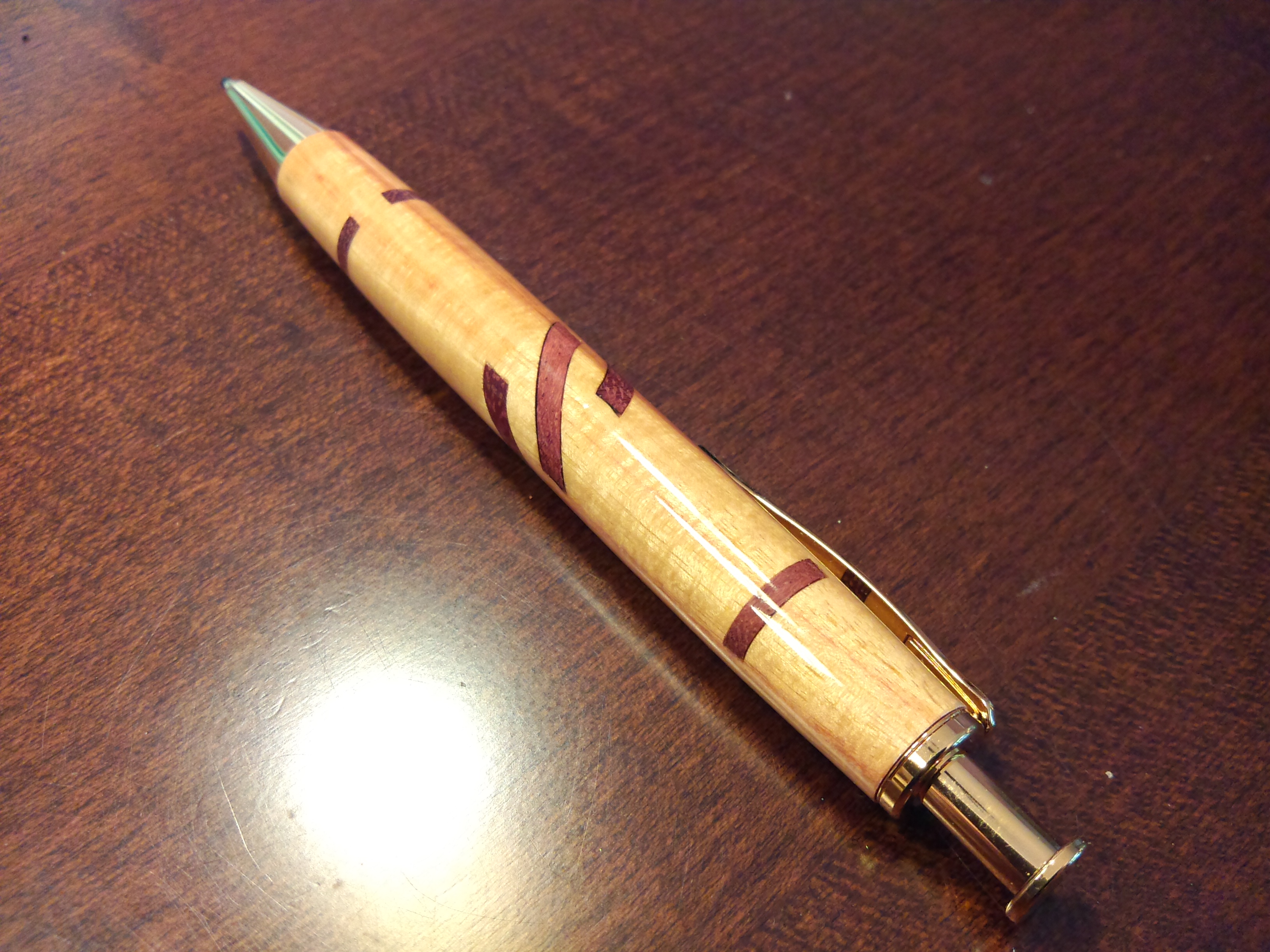 Here are few photos of the end result of what I have dubbed the “Lazy S” Design segmented pen. Then I have placed a photo or two of both of the recent segmented pens together. Which is your favourite?