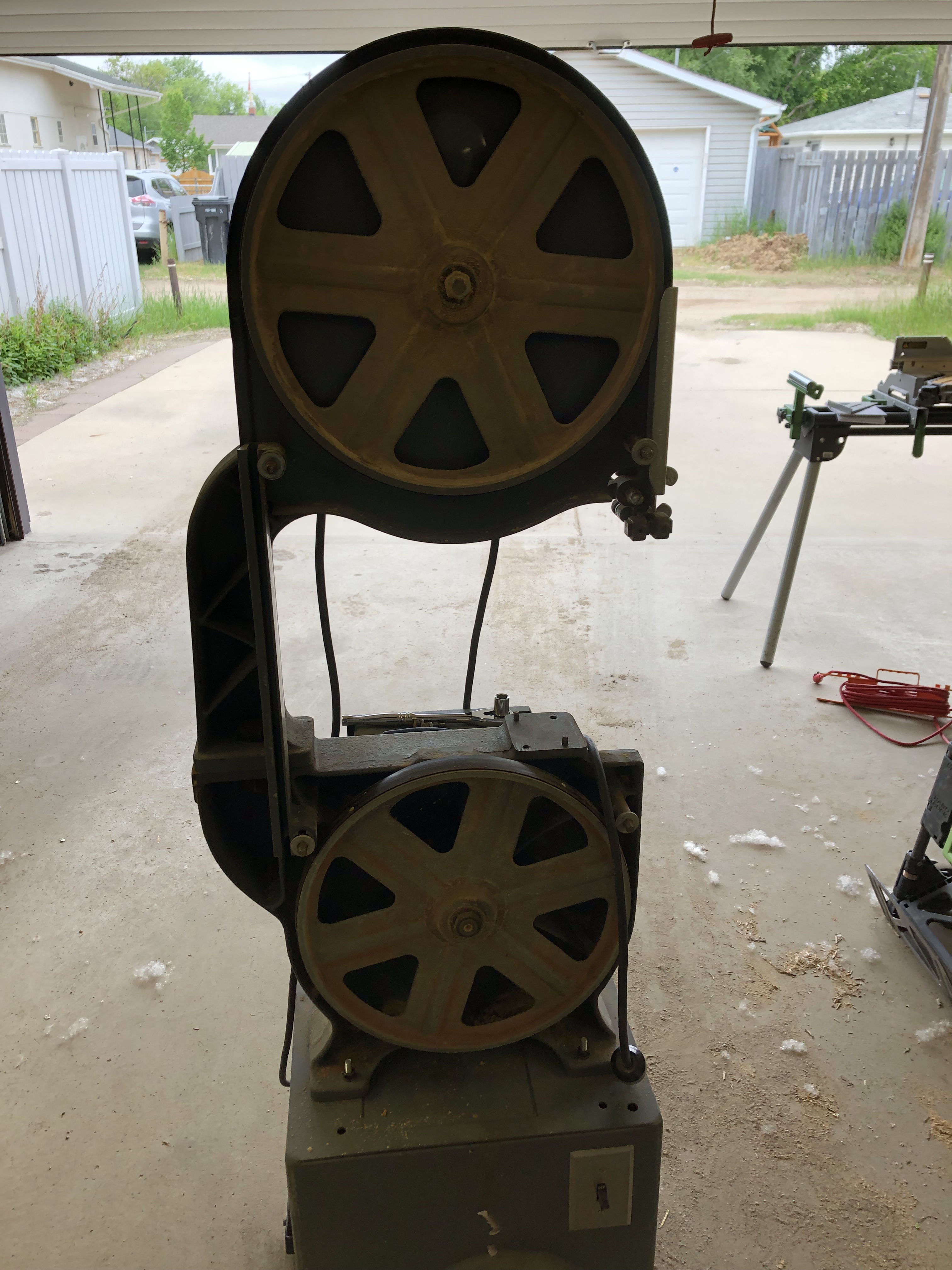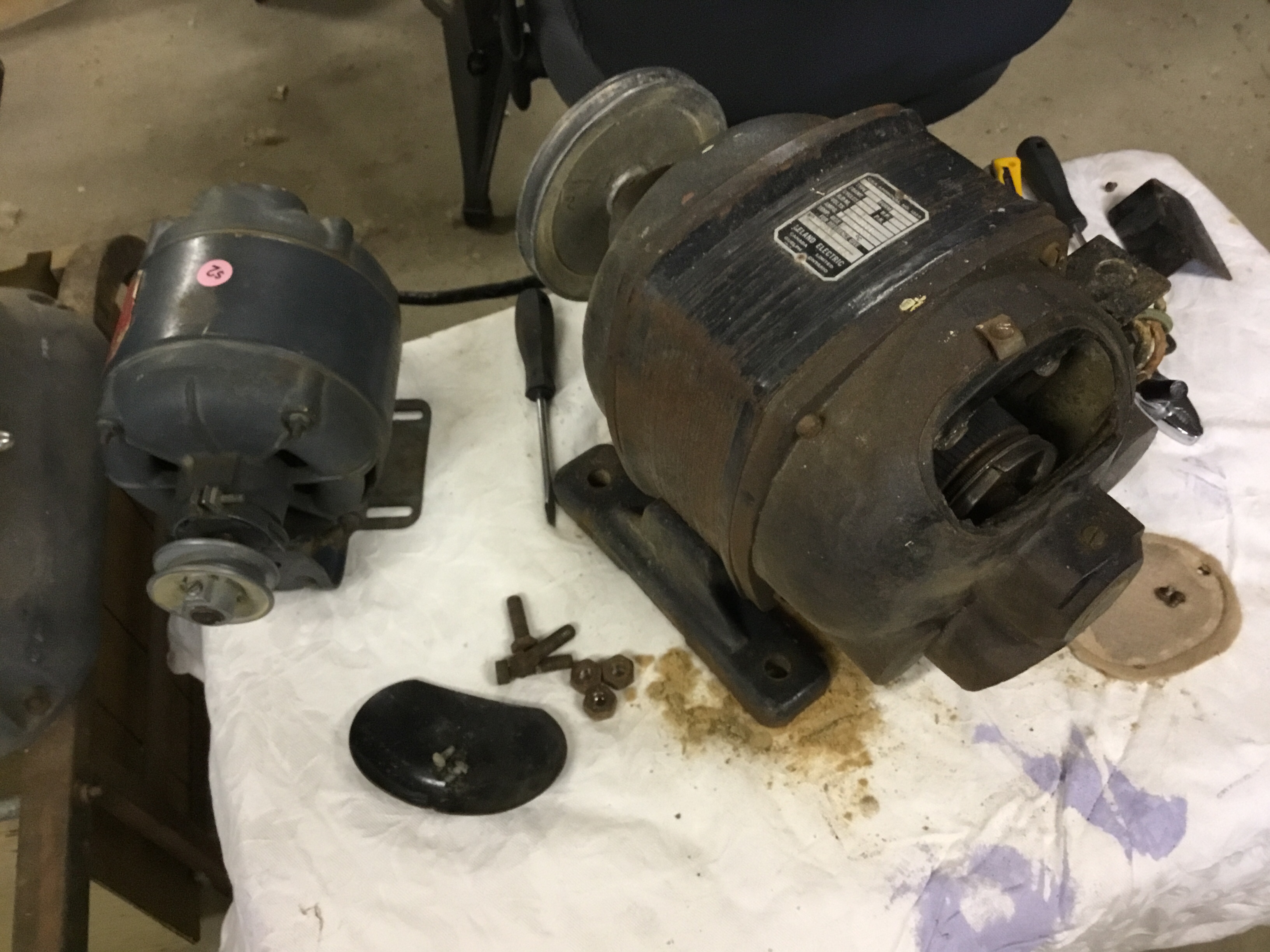 The motor is called a Repulsion/Induction motor. As the speed comes up, the centrifugal switch pulls away from the rotor which spins within the stator and effectively short circuits the startup switch. When the saw is turned off and the speed comes down, the centrifugal switch returns to its startup position… in theory. My switch is broken which means that while it can start, there is no “hook” on the switch anymore that wraps around the “necklace” or switch pieces. There were some advantages to this type of motor. Their electrical draw was less while up to speed and R/I motors had more torque. My saw has been in operation for almost 80 years and this is the first thing that has gone wrong. At any rate, I have pulled the motor off the saw and am preparing to install a new motor. It’s only a 1/2 horse so I hope there is enough power in it, but it is substantially smaller.